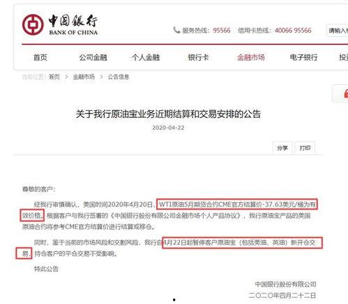 首先,得先给你科普中行油宝是什么。中行油宝是中国银行推出的一款理财产品,主要投资于原油期货市场。听起来是不是很高大上?没错,这款产品一度被誉为“稳赚不赔”的神话。最近却因为一系列的爆料,让这个神话瞬间破灭。
